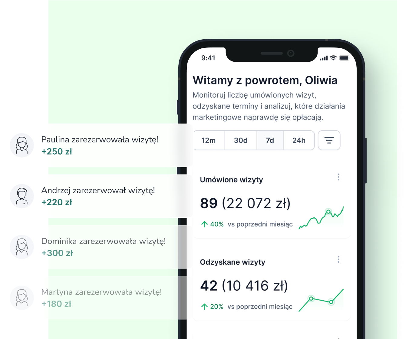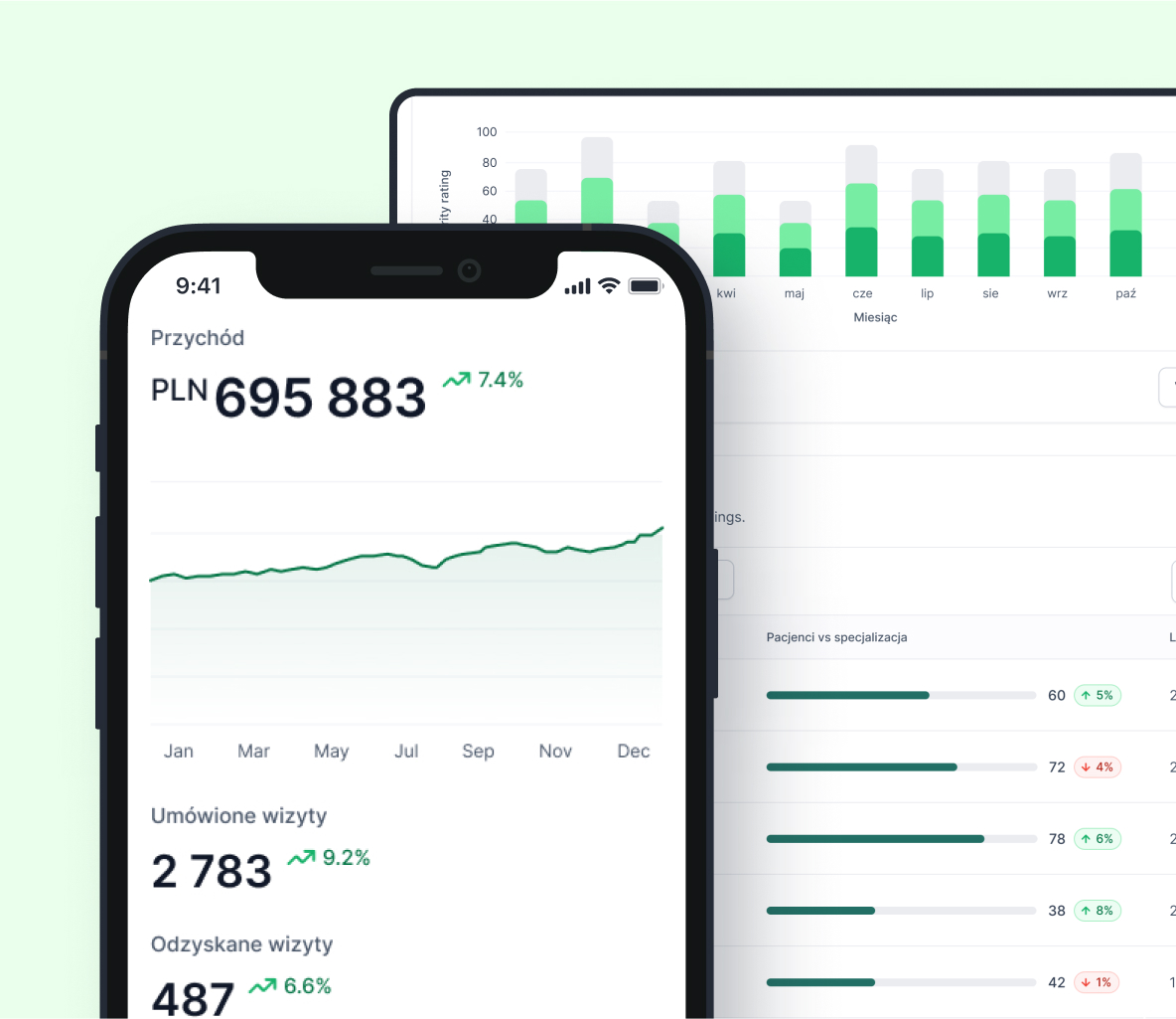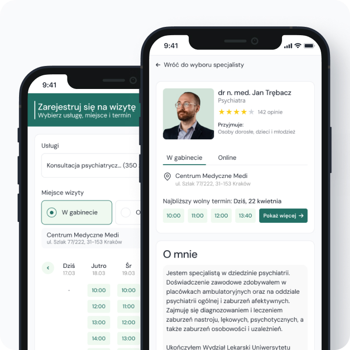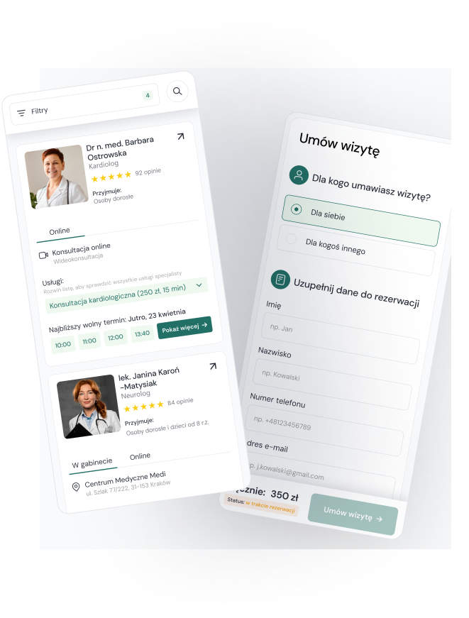 Nie trać czasu na ręczne zapisy, pozwól pacjentom umawiać się online – na wizyty prywatne i NFZ. Zwiększ liczbę rezerwacji nawet o 40%, zredukuj koszty obsługi, analizuj finanse i zyskaj pełną kontrolę nad marketingiem.