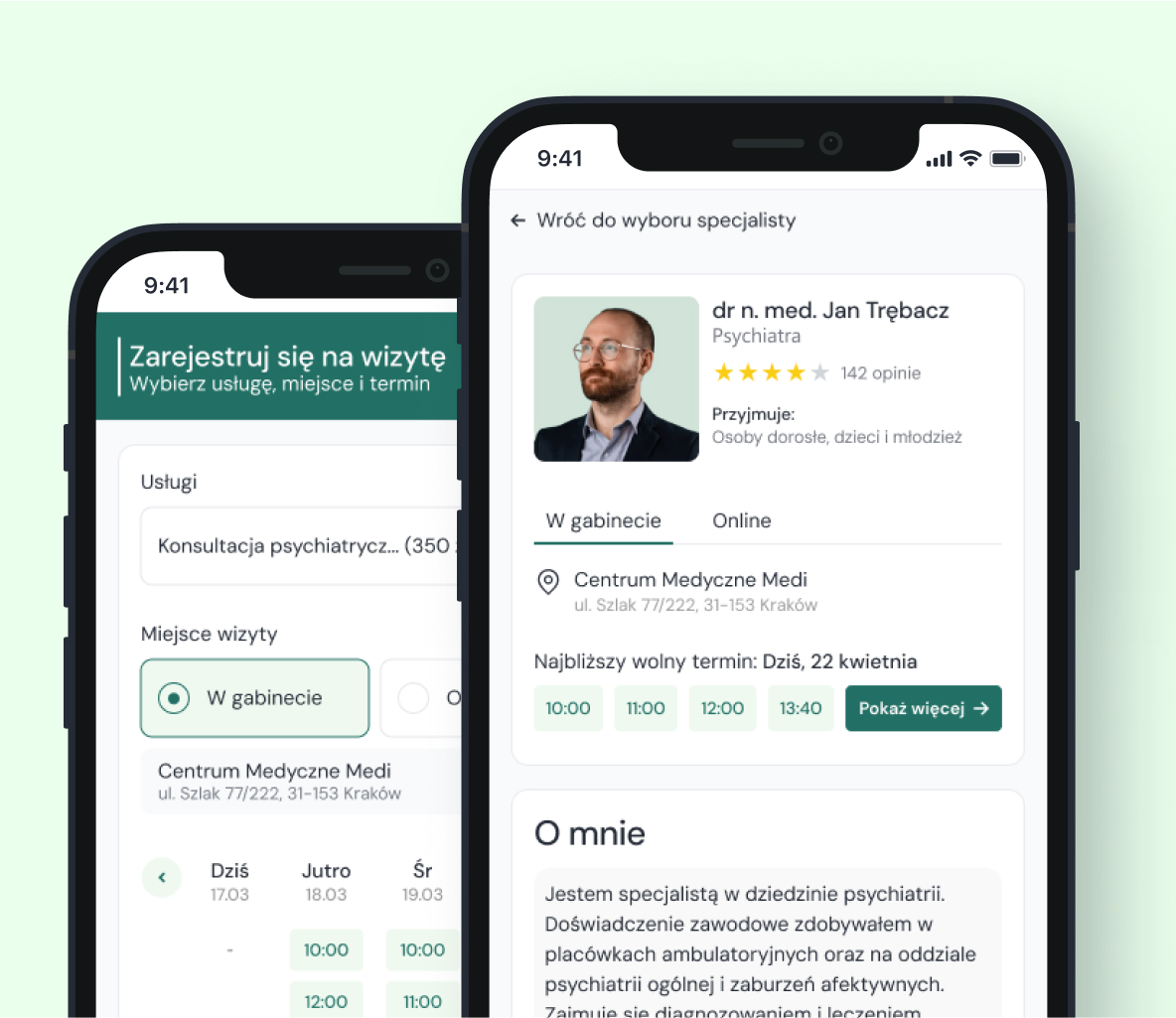 Profil specjalisty z opisem, usługami, terminami i bezpośrednią możliwością zapisu
