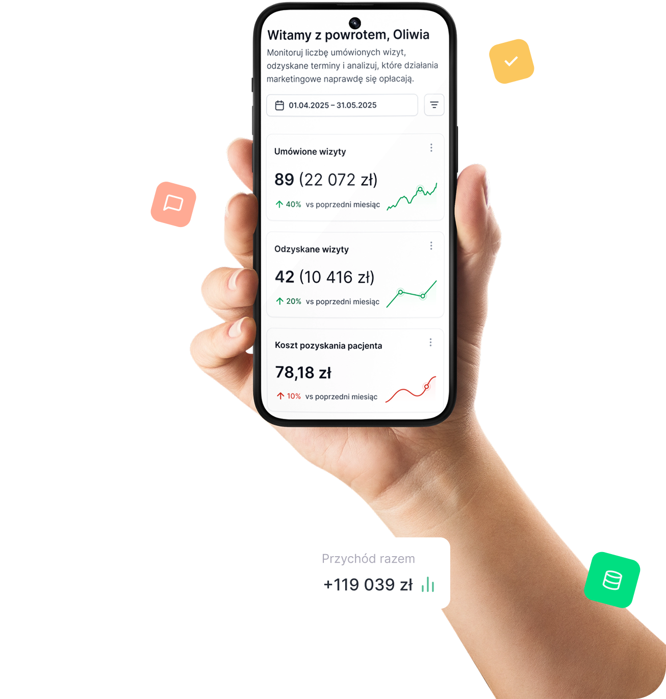 Śledź skuteczność kampanii, koszt pozyskania pacjenta i źródła ruchu